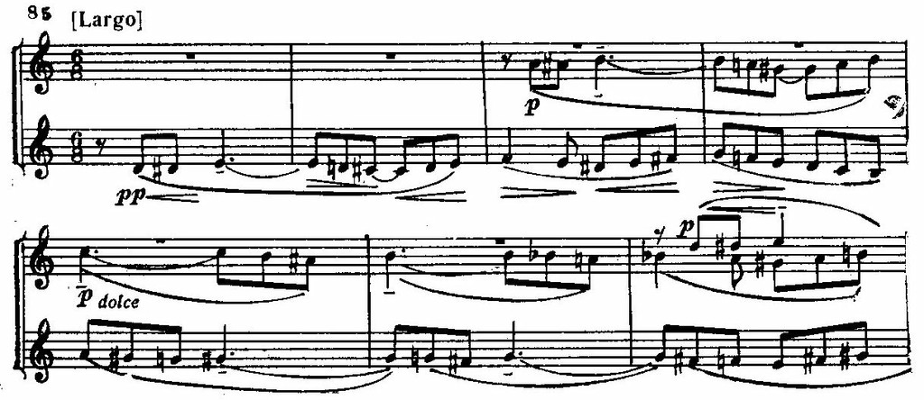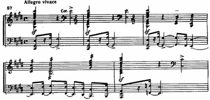 Как тихая, печальная жалоба звучат плавно нисходящие секвенции скрипок (а затем гобоя solo), построенные на той же фразе, в конце пролога.