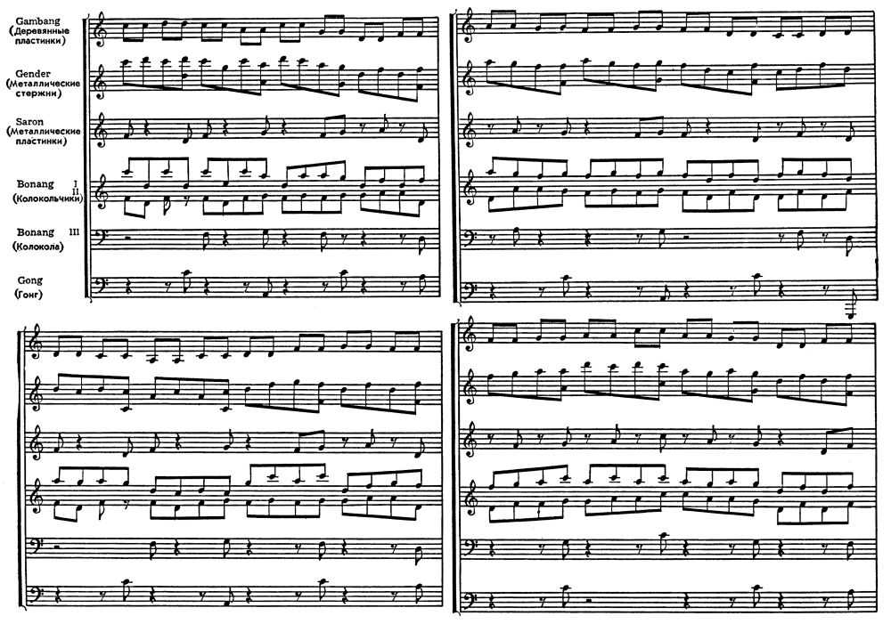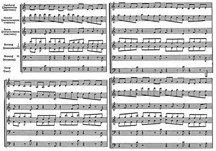 Отрывок из музыки для гамелана. Из книги Р. Батки «Geschichte der Musik».