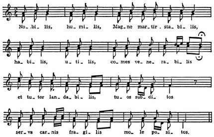 Образец органума из приписываемого Хукбальду трактата «Musica enchiriadis» («Руководство по музыке»).