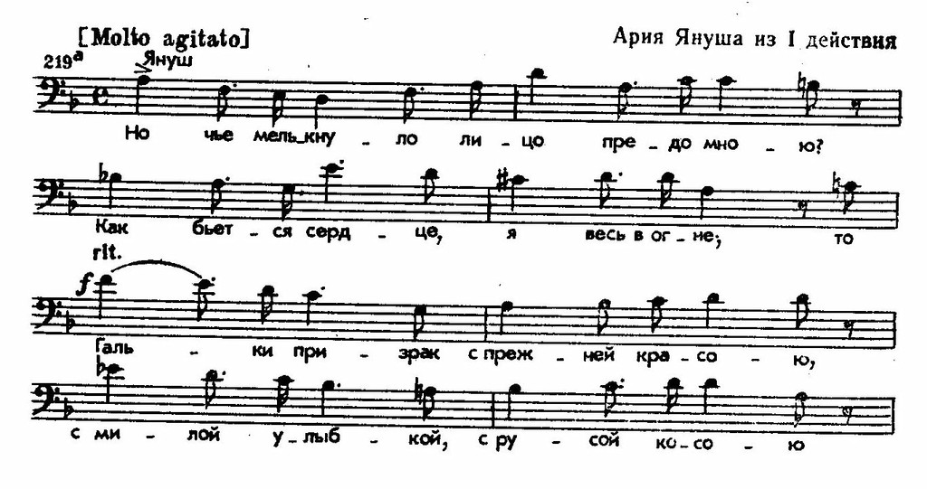 Быть может, самый яркий, свежий эпизод оперы — танцы горцев (из третьего действия). Они — воплощение духа польской народной музыки. Их оживленный темп, энергичные ритмы, своеобразная гармония, связанная с народным инструментальным исполнительством, резко противостоят торжественному стилю придворного полонеза.