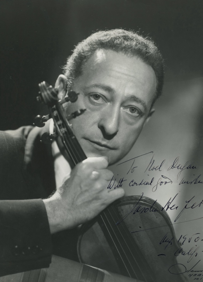 В Америке, да и во всем западном мире Яша Хейфец занял первое место среди скрипачей. Его слава является феерической, легендарной. «По Хейфецу» оценивают остальных, даже очень крупных исполнителей, пренебрегая стилевыми и индивидуальными различиями. «Наиболее великие скрипачи мира признают его как их мэтра, как их модель. Хотя музыка в настоящий момент отнюдь не бедна очень крупными скрипачами, но стоит увидеть Яшу Хейфеца появляющимся на эстраде, как сразу понимаешь, что он действительно возвышается над всеми остальными. К тому же его ощущаешь всегда несколько в отдалении; он не улыбается в залу; он едва смотрит туда. Он держит свою скрипку — Гварнери 1742 года, некогда принадлежавшую Сарасате — с нежностью. Известно, что он оставляет ее в футляре до самого последнего момента и никогда не разыгрывается перед выходом на сцену. Он держится как принц и царит на эстраде. Зал замирает, сдерживая дыхание, любуясь этим человеком».