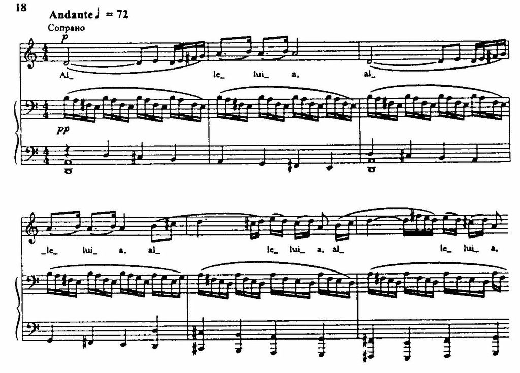 Нельзя не отметить конструктивной ясности и разностороннего мастерства композитора в применении полифонических приемов. Они особенно показательны в кульминационном эпизоде оратории (№ 16), а также во второй, заключительной кульминации — в финале (№ 27), где две темы из № 16 — соло сопрано и хора «Аллилуйя» — контрапунктически сочетаются по всем правилам классической полифонии, дополненной смелыми полигармоническими наслоениями.