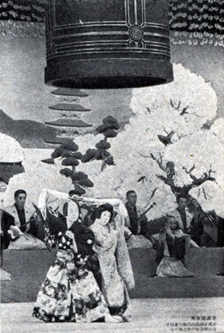 Характерная особенность танцев К. — обязательная связь с сюжетом всего представления. Каждая танц. сцена — составная часть драмы. В 1-й пол. 19 в. произошло дальнейшее развитие хэнгэ-моно — коротких танц. пьес с быстрой сменой костюмов гл. героя, к-рый трансформируется в разл. персонажи. Поскольку в хэнгэ-моно исполнителю приходится создавать несколько характеров, ему необходимо обладать высоким актёрским и танц. мастерством. Этим требованиям отвечало творчество актёров 19 в. Утаэмона Накамуры III и Мицугоро Бандо III. Хэнгэ-моно обновили танец К., т. к. включали нар. танцы, обычаи, песни. Эти нововведения неск. высвободили зависимость танцовщиков от их костюма. В кон. 19 в., после незавершённой бурж. революции Мэйдзи (1868), когда аристократич. театр ноо стал достоянием более широкой аудитории, танцы К. начали заимствовать сюжеты, костюмы и многое другое из этого т-ра. Появляются также танц. пьесы, основанные на средневековых фарсах — кёгэн. Однако все эти нововведения всегда укладывались в рамки уже сложившейся техники танцев. В дальнейшем значит, изменений танец К. не претерпел. Среди мастеров 2-й пол. 20 в.: Утаэмон Накамура VI, Байко Оноэ VII, Сикан Нака-мура VII и Томидзюро Накамура V. Иск-во танца К. было представлено на гастролях т-ра К. в СССР (1928, 1961).
