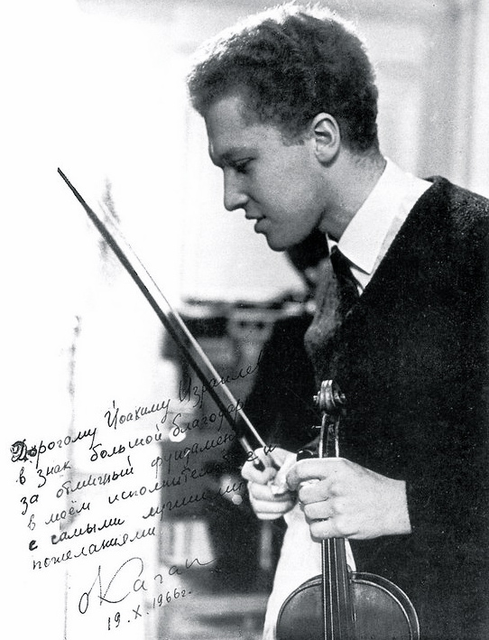 Кагану не были необходимы все эти «подпорки» – настолько самостоятельным, глубоко мыслящим музыкантом он был, настолько необозримы были его исполнительские возможности. Он спорил, если так можно выразиться, с выдающимися авторитетами – Ойстрахом, Рихтером – на их же собственном уровне, убеждая их в своей правоте, в реультате чего рождались выдающиеся исполнительские шедевры. Конечно, можно говорить о том, что исключительную внутреннюю дисциплину, позволявшую ему двигаться в своем искусстве по восходящей ровной линии, фундаментальность подхода к музыкальному тексту, привил ему Ойстрах – и в этом он, конечно, продолжатель его традиции. Однако в интерпретации Кагана тех же самых сочинений – сонат и концертов Моцарта, Бетховена, к примеру – обнаруживается та самая запредельная высота полета мысли и чувства, смысловая нагруженность каждого звука, которую Ойстрах не мог себе позволить, будучи музыкантом другого времени с другими, присущими ему ценностями.