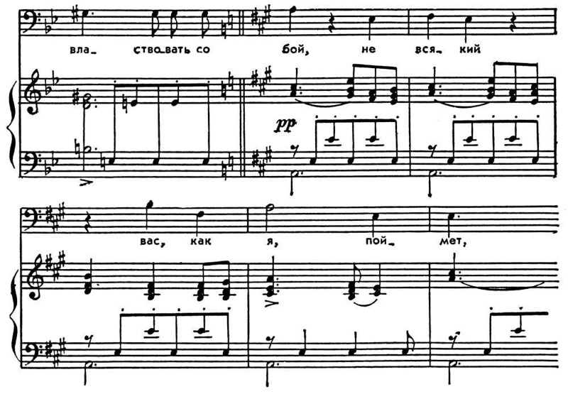 К. з. могут меняться и внутри нотного текста — в случаях смены тональности муз. произведения, а также для удобства чтения нотного текста. Для этого прежние К. з. отменяются бекарами, а затем выписываются новые К. з. (см. пример).