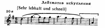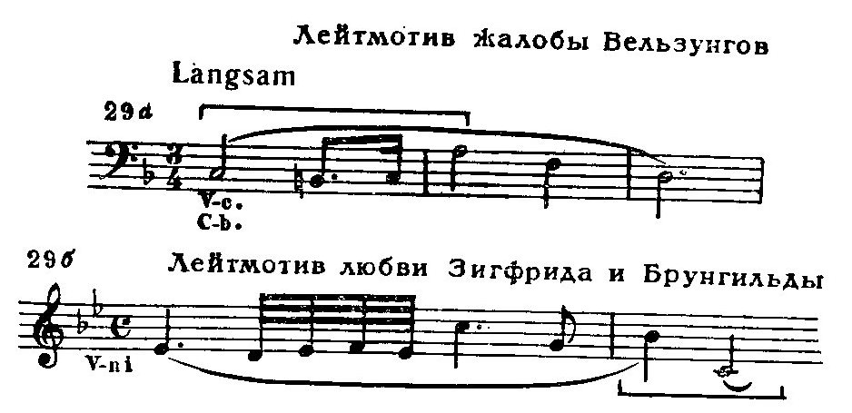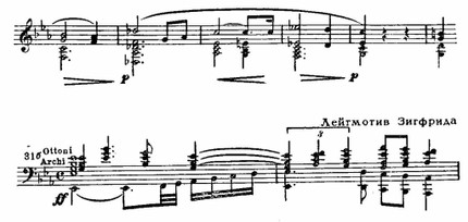 Количество подобных примеров можно умножить. Но и приведенных достаточно, чтобы понять особенности вагнеровской лейтмотивной системы.