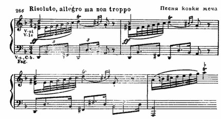 Столь важная в драматургическом отношении тема связана с образом героя. Поэтому, естественно, в ней содержатся те интонационно-ритмические элементы, которые отчетливо проявят себя в одном из лейтмотивов Зигфрида: