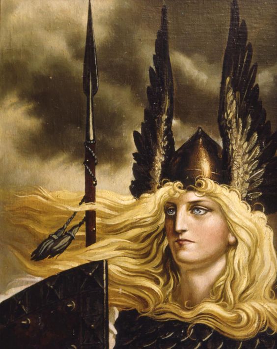 У его будущей жены Брунгильды другое воспитание. Она наощупь узнает добро и зло и после понятной растерянности перед лицом правды вновь обретает здравый смысл и с волнением, но и с твердостью идет в верном направлении. Вагнер изображает ее в трех возрастах. Сначала — годы беспечного детства и отрочества (речь идет о символическом времени) в доме отца, когда она вместе с сестрами проводит дни в скачках и отбирает лучших воинов для Валгаллы... Отец поверяет ей свои тайны, любит ее больше всех: с нерешительностью и недоверчивостью охотница наивно открывает глаза на закулисные события, о которых посреди молений и брани с глубоким огорчением рассказывает ей уважаемый глава семейства.