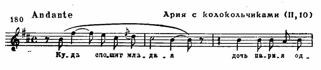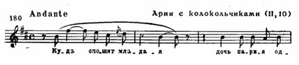 Партия Лакме пронизана песенностью (см. строфы в I акте, колыбельную — в III). Центральная ее характеристика содержится в сцене и легенде II акта (так называемая «ария с колокольчиками»):