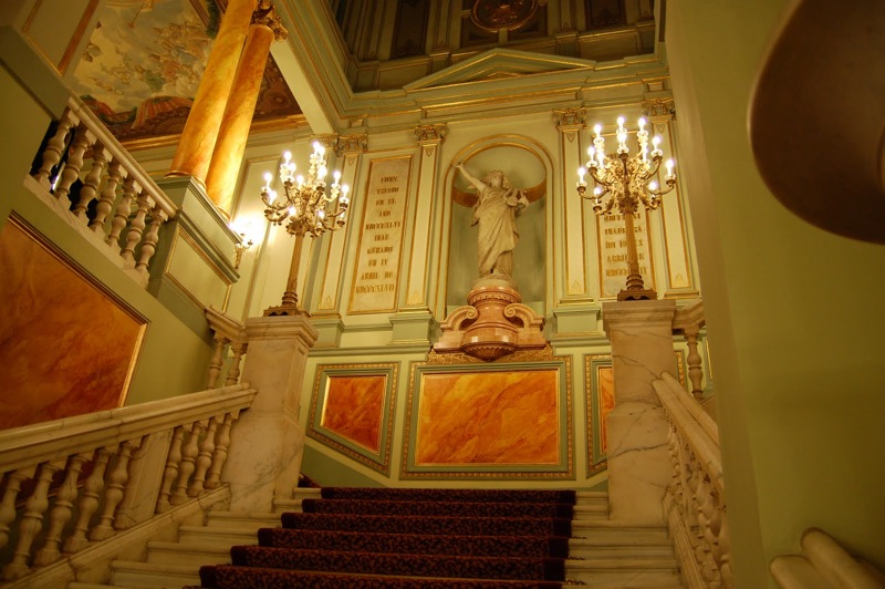 Сразу после открытия театр вмещал три с половиной тысячи человек, после первого ремонта в зале стало на пятьсот мест меньше, а ныне театр вмещает около 2700 зрителей. От исторической первоосновы остались лишь роскошный пятиярусный зрительный зал, как и полагается в красном бархате и золоте, и со множеством неудобных мест (правда, снабжённых дисплеями, так что в принципе можно всё видеть сидя, но, увы, «по телевизору»), центральная лестница и большое фойе, именуемое «Зеркальным салоном», украшенное портретами испанских драматургов, итальянских композиторов и оперных звёзд XIX века, выступавших на этой сцене, начиная с Джудитты Пасты.