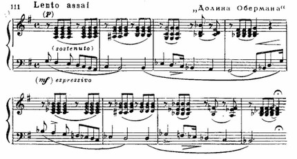 Особое место занимает центральная пьеса — «Долина Обермана». В ней переданы типичные романтические образы, вдохновленные романом в письмах французского писателя первой половины XIX века Сенанкура. Два отрывка из этого романа и строфа из «Паломничества Чайльд-Гарольда», взятые в качестве эпиграфа, рисуют противоречивый внутренний мир «молодого человека XIX столетия», его вечные сомнения, колебания и страстные порывы. Скорбная ниспадающая мелодия, с вздохами и стонущими задержаниями, стала своего рода «интонацией эпохи» для воплощения элегических образов: