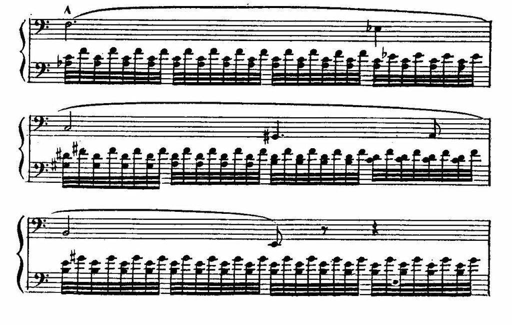 Для более выпуклой и броской передачи драматических или динамических моментов Лист широко использовал оркестровые эффекты тремоло, аккордовые трели или октавы martellato: