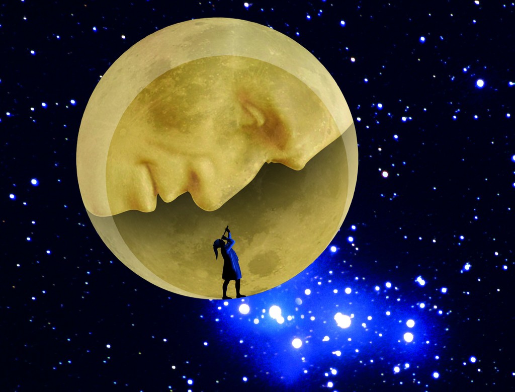 Появляется Экклитико. Он пришел проститься с Буонафеде: при помощи «волшебного» эликсира, дарованного ему якобы самим лунным императором, он собирается отправиться на Луну. Буонафеде умоляет взять его с собой. Экклитико охотно делится напитком, который оказывается простым снотворным. Засыпая, Буонафеде представляет, что вместе с астрологом летит сквозь облака и звезды прямо к Луне.