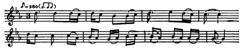 Наиболее типичен образец нар. напева, относящегося ко второй группе: