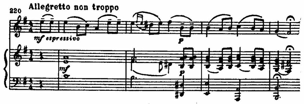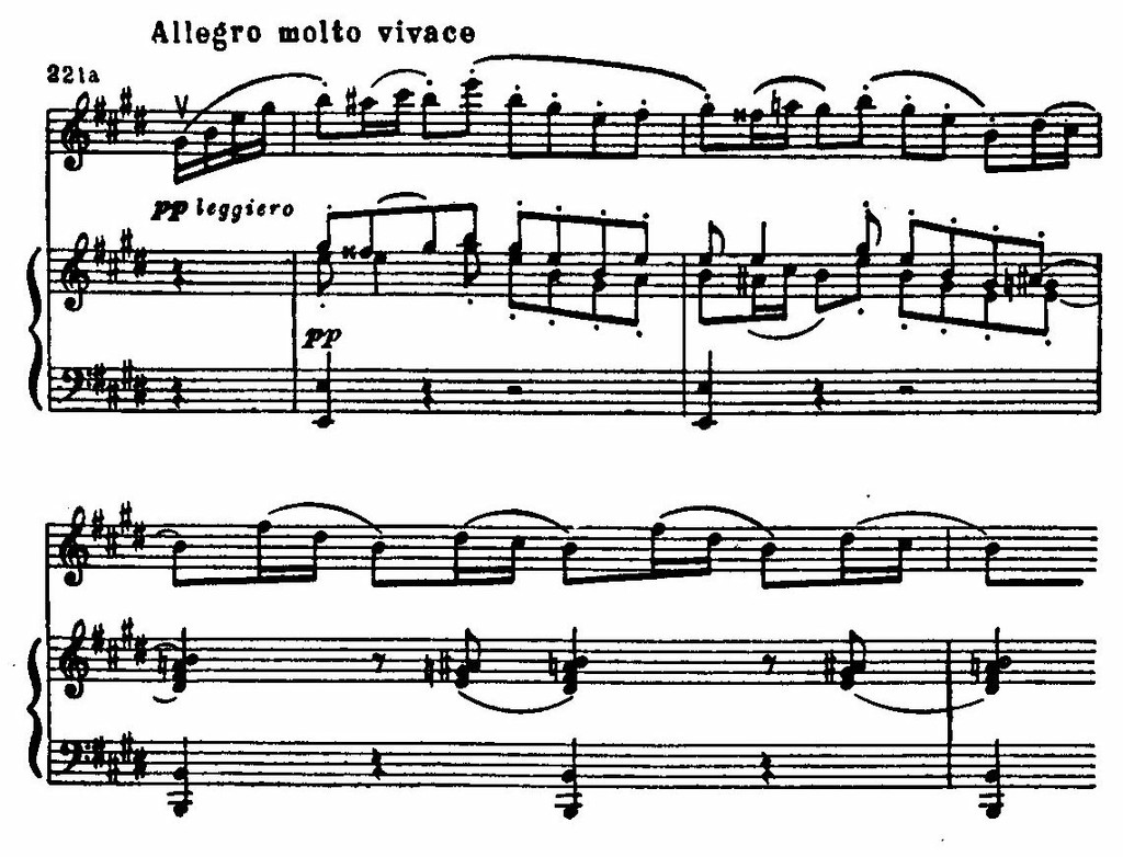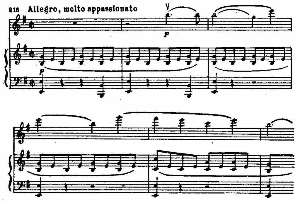 В гениальном скрипичном концерте e-moll (1844) Мендельсон достиг той высокой драматичности, которая позволяет говорить о следовании бетховенским симфоническим традициям. Вместе с тем это произведение от первого до последнего звука овеяно романтической поэзией.