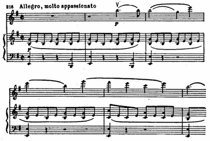 Несмотря на явную зависимость от главной, новые его свойства — расширение диапазона звучания, хроматические полутоновые интонации в восходящем направлении — придают теме более энергичное выражение и большую устремленность движения.