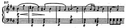 Он сыграл большую роль и в обогащении технических ресурсов современного скрипичного исполнительства. Но у Мендельсона новые виртуозные приемы были неразрывно связаны с поэтическими образами. Показательно, что, вопреки обычаю, который давал право исполнителю играть каденцию по собственному выбору, Мендельсон сам сочинил ее и вписал в ноты, органически связав со стилем и формой произведения.