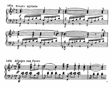 Наиболее «видным» признаком, условно объединяющим каждую группу пьес, служит темповое обозначение. Медленное или умеренно медленное движение типично для первой группы; для второй — обычны разновидности быстрого темпа (Presto agitato, Agitato е con fuoco и т. п.).
