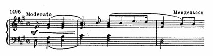 (См., например, ноктюрн из музыки к «Сну в летнюю ночь», вступление и Adagio из «Шотландской симфонии», медленную часть скрипичного концерта, обоих фортепианных трио, Второго фортепианного концерта, ариозо № 33 и арию № 24 из «Илии», арию с хором № 19 из «Павла».)