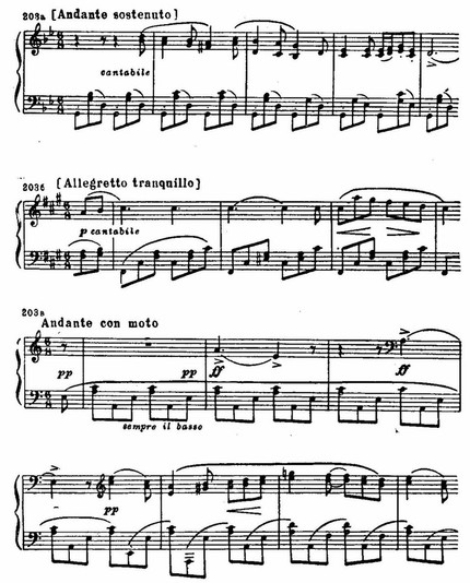 В вольное течение мелодии неоднократно вклиниваются прелюдийного типа пассажи вступления, что вносит в эту стройную трехчастную форму характер импровизационности.