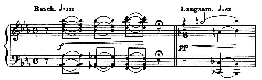 «Воображаемый аккомпанемент» может поддерживаться ритмической инерцией, но в начале увертюры «Манфред» Шумана он выступает вне всяких отношений к предыдущему и последующему:
