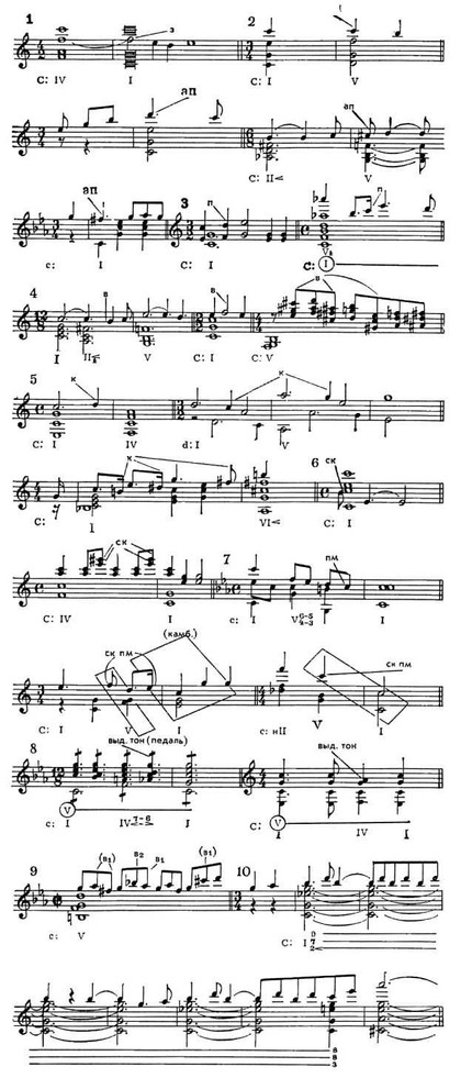6) скачковый тон (ск) — задержание либо вспомогательный, взятый без приготовления и покинутый. без разрешения;