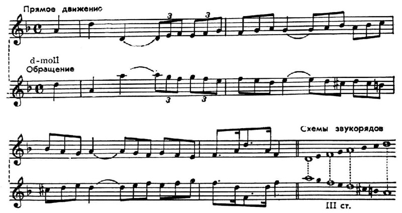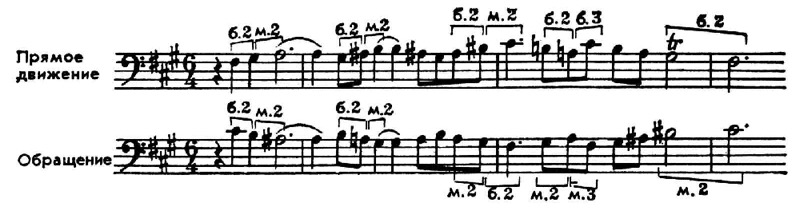 В темах с хроматич. движением О. т. осуществляется так, чтобы по возможности сохранилась качественная величина интервалов — это обеспечивает большее сходство выразительности обращённого и прямого движения: