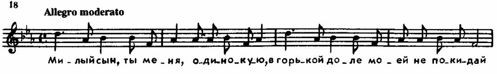 Своим четким упругим ритмом и резкостью мелодических очертаний она, как уже отмечалось в литературе о Чайковском, близка к темам рока, фатума в симфоническом творчестве композитора.