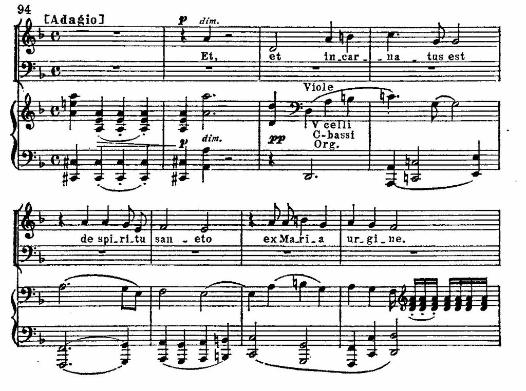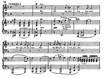 Необычен интонационный строй мессы. Колористические эффекты хорового звучания придают всей музыке особенную красоту, в «Et incarnatus», напоминая хоровой стиль Палестрины, неожиданно звучат старинные лады: