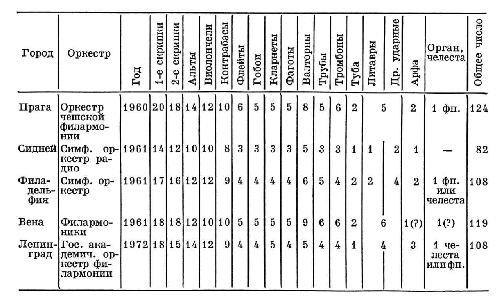 В то же время в связи с новыми идейно-стилистич. тенденциями в нач. 20 в. возник камерный оркестр. Во мн. симф. и вок.-симф. сочинениях используется лишь часть состава большого симф. О. — т. н. ненормативный, или индивидуализированный, состав О. Напр., в «Симфонии псалмов» Стравинского (1930) из традиц. большого состава изымаются кларнеты, скрипки и альты.