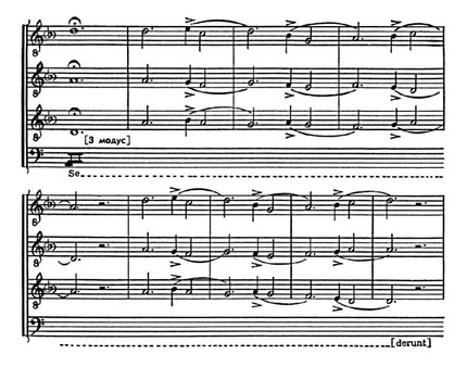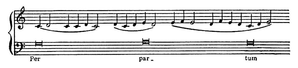 Образцы параллельного органума из трактатов «Musica enchiriadis» (вверху) и «Scholia enchiriadis» (внизу).