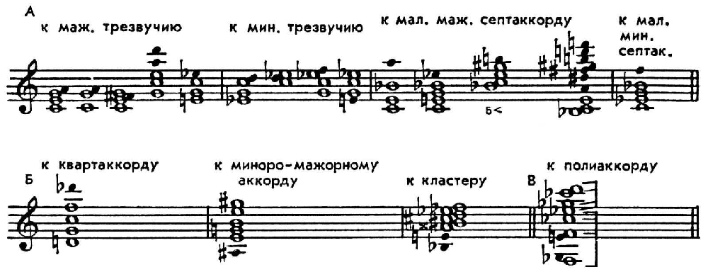 П. т. возможны по отношению не только к терцовым аккордам, но и к аккордам иной структуры, а также к полиаккордам: