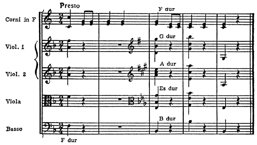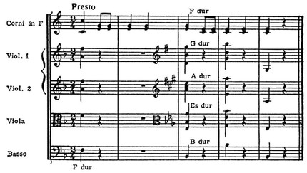 Глареан в «Додекахорде» (1547) допускал одноврем. сочетание представленных разными голосами разл. ладов. Известный пример П. (1544) — «Еврейский танец» X. Нёйзидлера (в издании «Denkmaler der Tonkunst in Osterreich», Bd 37) — в действительности представляет не П., а полиладовость. Исторически первый «политонально» записанный фальшивый полиаккорд — в заключит. тактах «Музыкальной шутки» В. А. Моцарта (K.-v. 522, 1787):