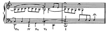 (В П. к. из приведённой пьесы С. С. Прокофьева тонике предшествует гармония тритоновой — IV высокой ступени, принадлежащая к хроматич. системе.)