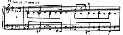 Уже первые фортепианные транскрипции Прокофьева — его «Марш» и «Скерцо» из оперы «Любовь к трем апельсинам» — продемонстрировали во всей своей силе указанные нами выше особенности и достоинства его транскрипторского творчества. Пьесы эти, обозначенные ор. 33 ter, особенно «Марш», получили огромную популярность.