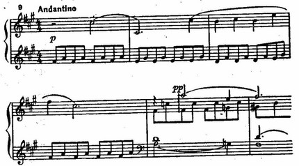 Наконец, последняя, четвертая «Сказка» (Sostenuto, h-moll) прельщает, с одной стороны, эпической широтой запева (в начале), а с другой — экспрессивными интонациями (ход на большую септиму и фанфарные восклицания в середине).