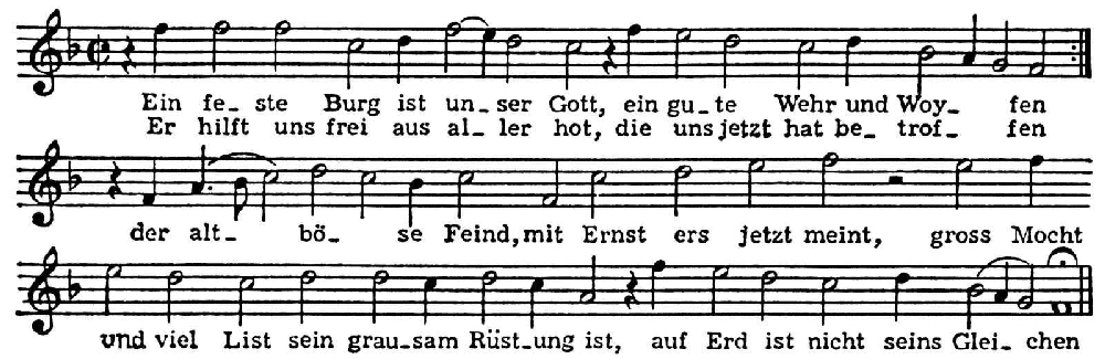 Лютер стремился к тому, чтобы музыка П. х. была простой, доступной для понимания и исполнения общиной, не имевшей певч. подготовки, и в то же время красивой, запоминающейся. Работа по оснащению новых песнопений соответств. мелодиями в основном была проведена в 1524 самим Лютером в сотрудничестве с музыкантами К. Рупфом и И. Вальтером. Во мн. случаях были использованы григорианские напевы, однако в переработанном, приближённом к языку нар. нем. песни виде.