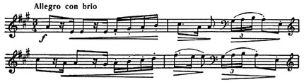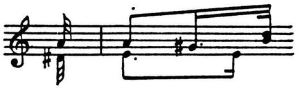 и др. Об условности записи в прошлом фигур П. р. свидетельствуют многочисл. случаи, когда их фактически совпадающие короткие звуки записывались в разл. голосах стоящими друг над другом нотами разных длительностей. Но и в случаях, когда такие ноты записывались не друг под другом, по свидетельству виднейших музыкантов прошлого, предусматривалось их одноврем. исполнение (с укорочением более протяжённого короткого звука). Напр., согласно Д. Г. Тюрку, фраза должна была исполняться так: