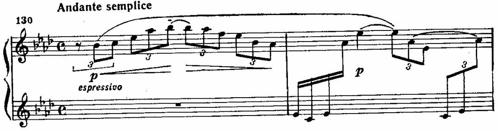 Таков характерный каденционный оборот во вступительном построении, повторяемый еще раз в конце: