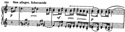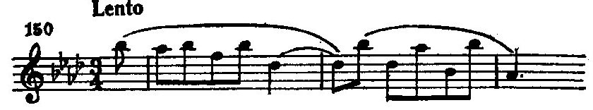 Сама мелодия, все время излагаемая в высоком регистре, звучит необычайно светло и словно парит в легком прозрачном воздухе. В широких мелодических ходах заключительных фраз слышатся обороты, родственные лирической мелодике Прокофьева и других композиторов более позднего времени.