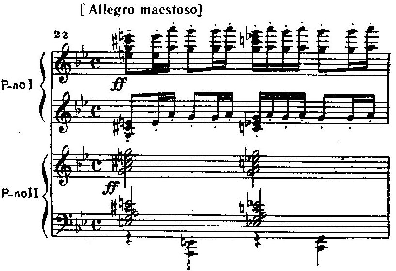 Различные ритмические варианты, наслаиваясь друг на друга, создают характерную узорчатую полифонию, как при сочетании набора колоколов разного калибра и разной настройки в радостном праздничном перезвоне. Двукратно проводимая суровая, «истовая» тема старинного пасхального напева в широком аккордовом изложении, напоминающем звучание мощного хора, довершает величавую эпическую картину всенародного торжества и ликования.
