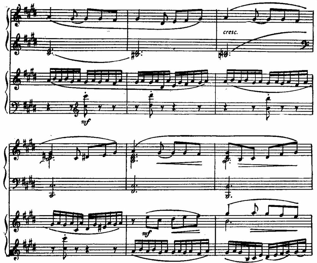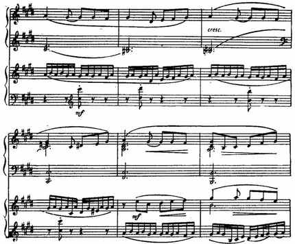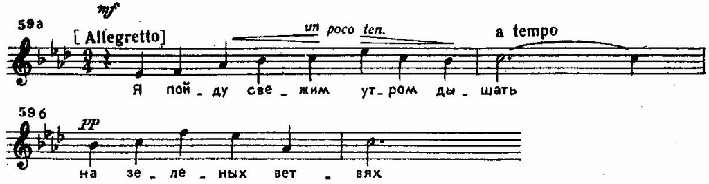 Интересно отметить сходство этой темы с некоторыми мелодическими оборотами романса «Сирень», особенно явственно выступающее благодаря общей тональности As-dur (Романс «Сирень» входит в состав вокального цикла ор. 21, опубликованного в 1902 году, но, по свидетельству Е. Р. Винтер-Рожанской, он был сочинен ещё летом 1898 года.):