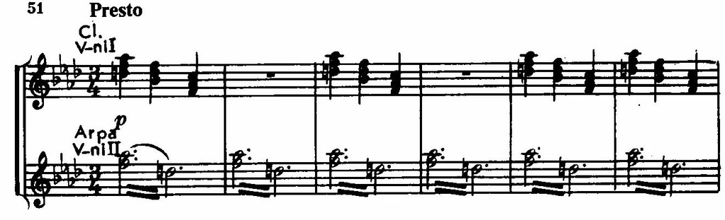 Основная тема возникает из секундового сопоставления трезвучий I и II ступеней, переходящего в непрерывный заливистый звон.