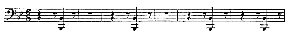 В истории тактовой ритмики 17 — нач. 20 вв. можно выделить три осн. эпохи. Завершаемая творчеством И. С. Баха и Г. ф. Генделя эпоха барокко устанавливает осн. принципы новой ритмики, связанной с гомофонно-гармонич. мышлением. Начало эпохи отмечено изобретением генерал-баса, или непрерывного баса (basso continuo), реализующего не связанную цезурами последовательность гармоний, смены к-рых в норме соответствуют метрич. акцентуации, но могут и отклоняться от неё. Мелодика, в к-рой «кинетическая энергия» преобладает над «ритмической» (Э. Курт) или «Р. тем» над «тактовым Р.» (А. Швейцер), характеризуется свободой акцентуации (по отношению к такту) и темпа, особенно в речитативе. Темповая свобода выражается в эмоциональных отклонениях от строгого темпа (К. Монтеверди противопоставляет tempo del'-affetto del animo механическому tempo de la mano), в заключит. замедлениях, о к-рых пишет уже Дж. Фрескобальди, в tempo rubato («скрадываемый темп»), понимаемом как сдвиги мелодии относительно аккомпанемента. Строгий темп становится скорее исключением, о чём свидетельствуют такие указания, как mesurй у Ф. Куперена. Нарушение точного соответствия между нотными обозначениями и реальными длительностями выражается в суммарном понимании продлевающей точки: в зависимости от контекста