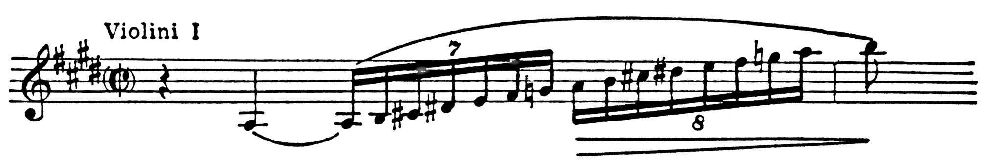 . Др. вид парадоксальных написаний заключается в том, что при меняющемся ритмич. делении композитор, чтобы сохранить тот же уровень весомости, вопреки правилам муз. орфографии, не меняет нотных величин (Р. Штраус, С. В. Рахманинов):