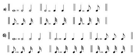 Помимо этого, применяется произвольное (условное) деление осн. длительностей на разл. число равных долей, не отвечающее господствующему в данном произв. принципу метрич. деления; т. о., возникают дуоль, триоль, квартоль, квинтоль, секстоль, септоль, октоль, нонемоль, децимоль, а также группы с бульшим числом дробных длительностей, не имеющие спец. названий. В произвольном Р. д. дробные длительности короче соответствующих им длительностей при чётном делении.