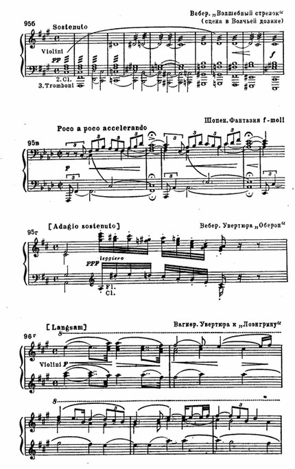 Приводим примеры характерных тем композиторов-романтиков. За исключением отрывков из сочинений Шопена, все они заимствованы из произведений, непосредственно связанных с фантастическими мотивами, и создавались на основе конкретных образов театра или поэтического сюжета: