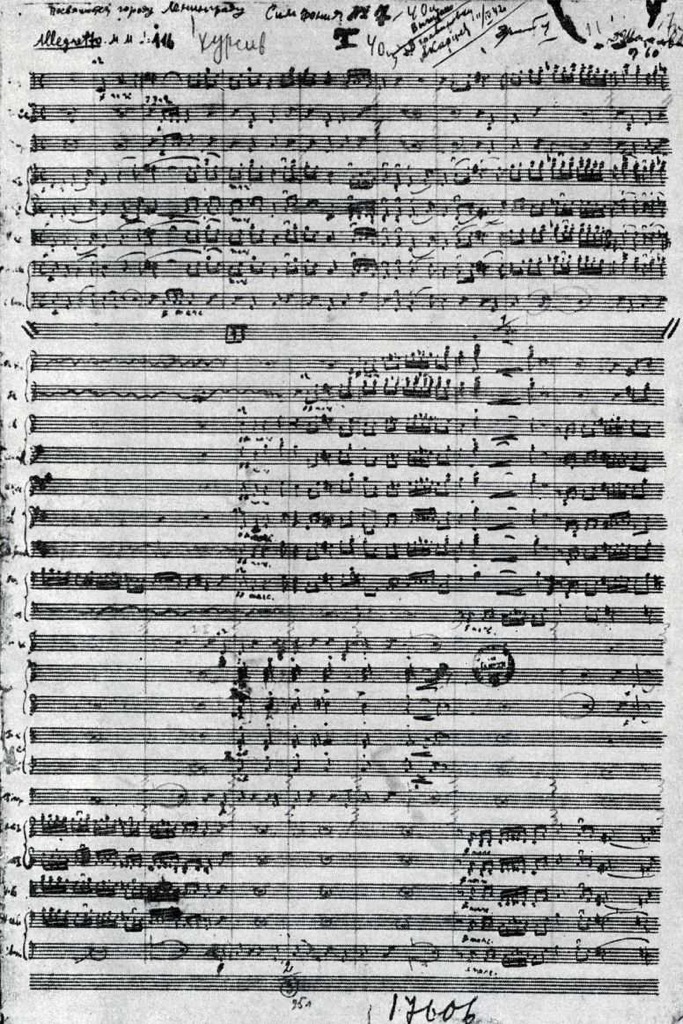 Д. Д. Шостакович. 7-я симфония, 1-я часть. Страница партитуры. Автограф.