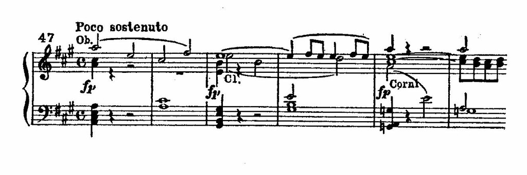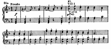 В динамической репризе, следующей за мечтательным мажорным средним эпизодом, главная тема подвергается фугированному развитию.