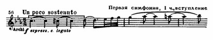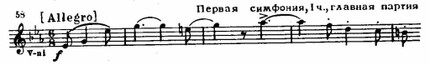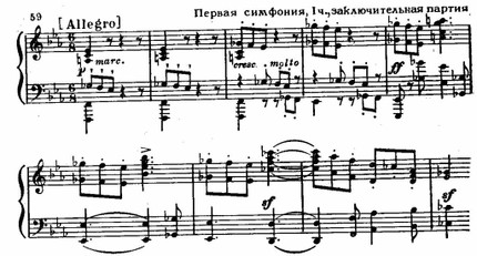 Иное назначение у следующего мотива, который также играет далее значительную роль,— в нем слышится робкая надежда на лучшее, светлое будущее. И как бы в отдалении проходит тема — предвестник главной партии Allegro: мерцание мажора — минора характерно для этой мятежно-порывистой темы:
